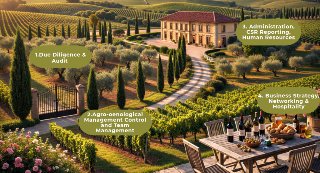 Our holistic vision encompasses agronomic and oenological management, marketing, sales, and hospitality strategies.